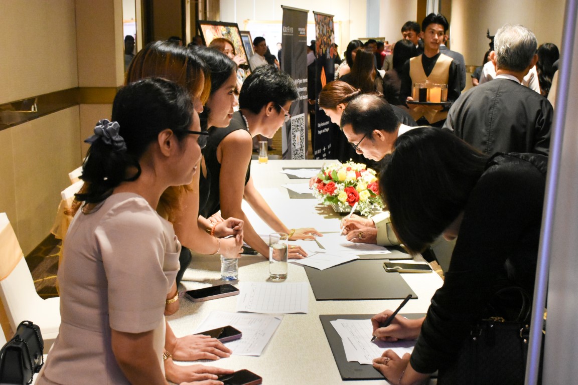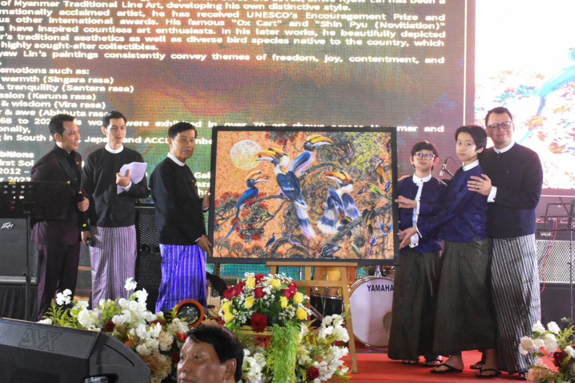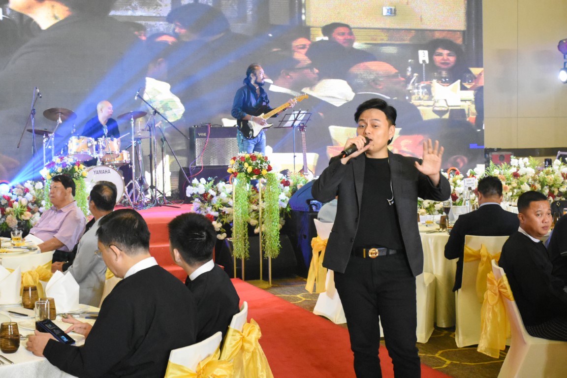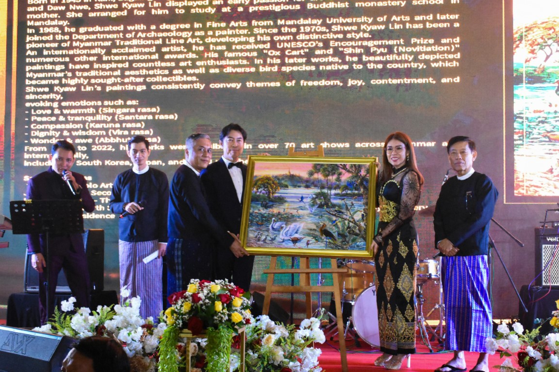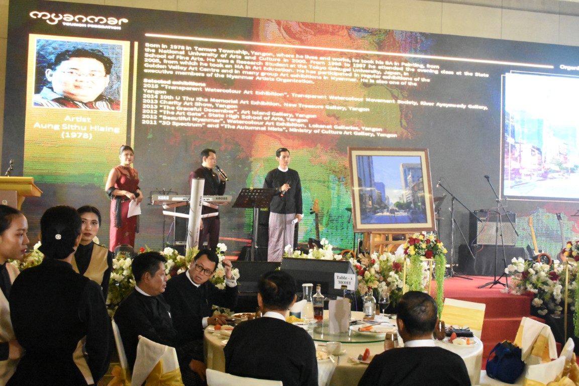 မြန်မာနိုင်ငံခရီးသွားလုပ်ငန်းအဖွဲ့ချုပ် ရန်ပုံငွေရရှိရန် ရည်ရွယ်၍ ရန်ပုံငွေရှာဖွေရေး ဂီတဖျော်ဖြေမှုနှင့် ပန်းချီကားများ လေလံတင် ညစာစားပွဲ အခမ်းအနားအား ၂၀၂၅ ခုနှစ်၊ စက်တင်ဘာလ (၁၃) ရက်နေ့၊ စနေနေ့၊ ညနေပိုင်း၊ Pan Pacific Yangon ၌ ကျင်းပခဲ့ရာ မြန်မာနိုင်ငံခရီးသွားလုပ်ငန်းအဖွဲ့ချုပ် ဥက္ကဋ္ဌ၊ ဗဟိုအလုပ်အမှုဆောင်အဖွဲ့ဝင်များ၊ အထူးဧည့်သည်တော်များ၊ အထူးဖိတ်ကြားထားသော သံရုံးများမှ သံအမတ်ကြီးများနှင့် တာဝန်ရှိပုဂ္ဂိုလ်များ၊ ပံ့ပိုးကူညီထားသော အဖွဲ့အစည်းများ၊ ကုမ္ပဏီများမှ ကိုယ်စားလှယ်များနှင့် ခရီးသွားလုပ်ငန်းကို ချစ်မြတ်နိုးကြသော ပြင်ပဧည့်သည်တော်များ တက်ရောက်ခဲ့ကြသည်။